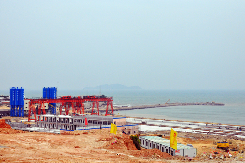 東防波堤工程全長5423米,西防波堤工程全長3315米,口門寬度600米?陂T堤頭段采用直立式沉箱結(jié)構(gòu),其他堤身段采用拋石斜坡堤結(jié)構(gòu),共需拋填各類石料1060萬m3,澆筑混凝土82.6萬 m3,項目總投資為25.45億元,建安費17.94億元。東西防波堤建成后,形成港池面積6平方公里,岸線10850米,可建3-30萬噸級泊位30-35個,設(shè)計吞吐量2億噸。