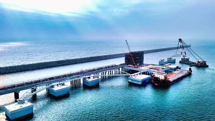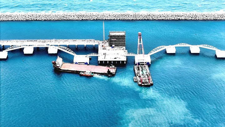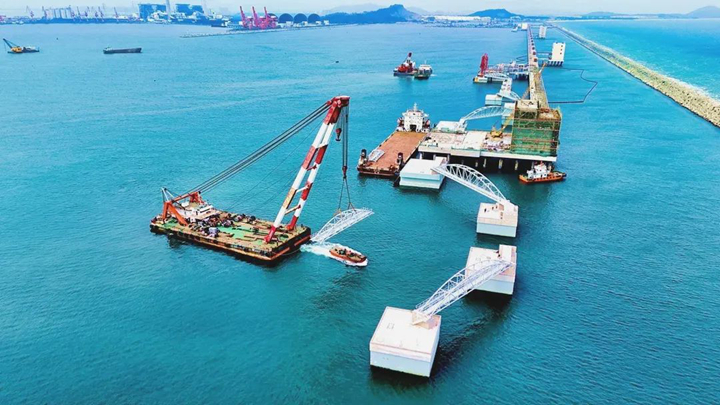 在新年伊始的奮進號角中,茂名港30萬噸級原油碼頭工程于2月23日全面完成了鋼聯(lián)橋安裝施工,標志著項目建設完成關鍵新節(jié)點。這一重要突破為30萬噸級原油碼頭工程新年開好局、起好步奠定了堅實基礎,也為加快項目建設,保障工程如期竣工注入了強勁動力。