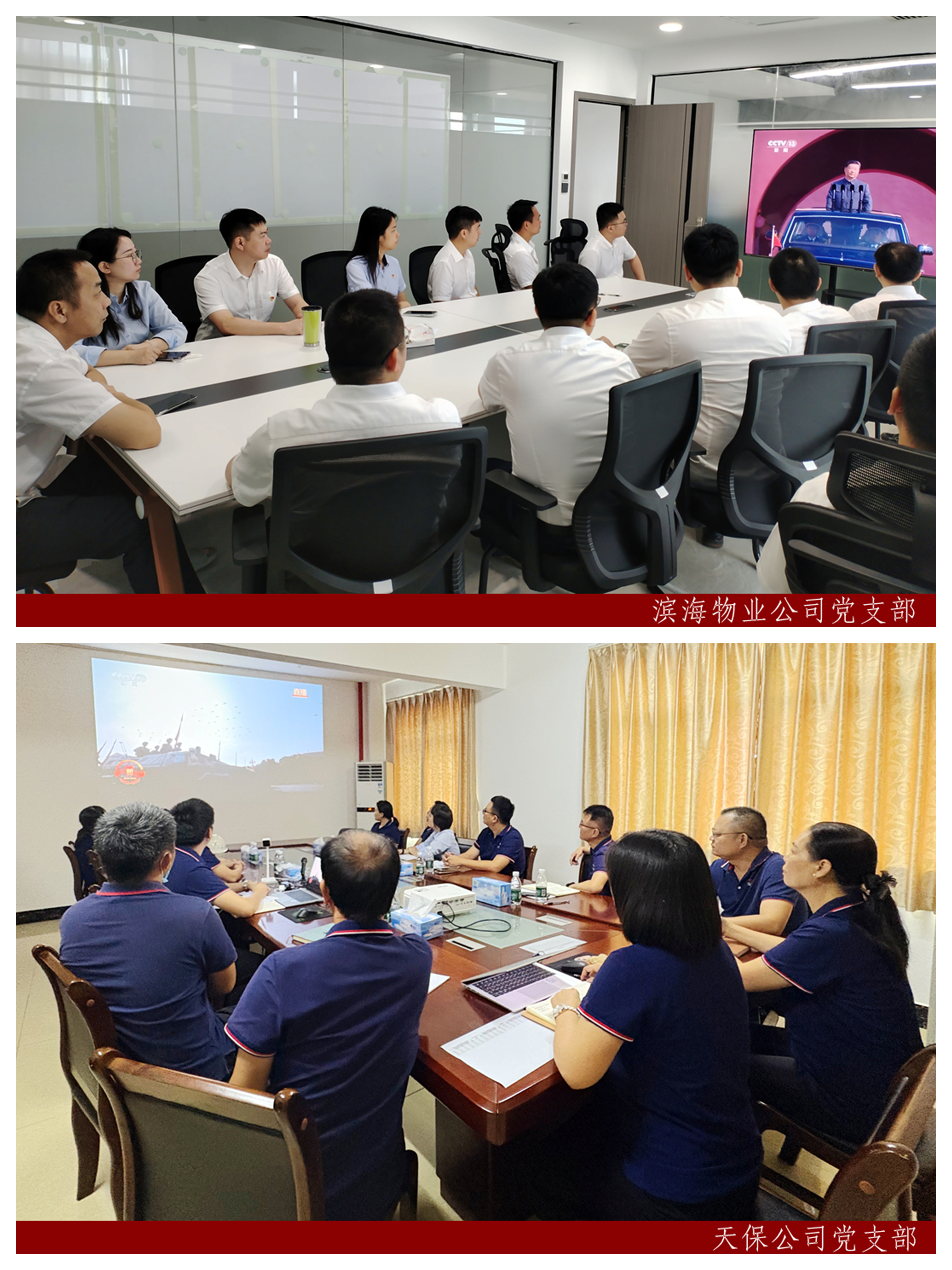隨著中共中央總書記、國家主席、中央軍委主席習近平發(fā)表重要講話,集團各黨支部會議室同時響起熱烈掌聲。觀看過程中,全體黨員干部職工全神貫注,心情隨著閱兵式的推進而激動不已,深切感受到國家日益強大,為祖國國防力量的現代化發(fā)展感到無比自豪。